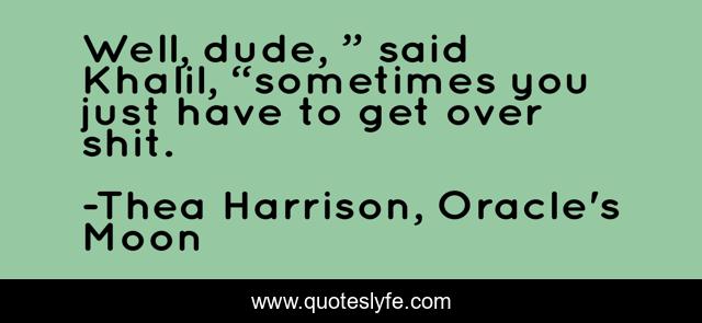This page presents the quote "Well, dude, ” said Khalil, “sometimes you just have to get over shit.". Author of this quote is Thea Harrison, Oracle's Moon. This quote is about strenght, moving-forward, acceptance, kickass, getting-over-it, staying-string,.