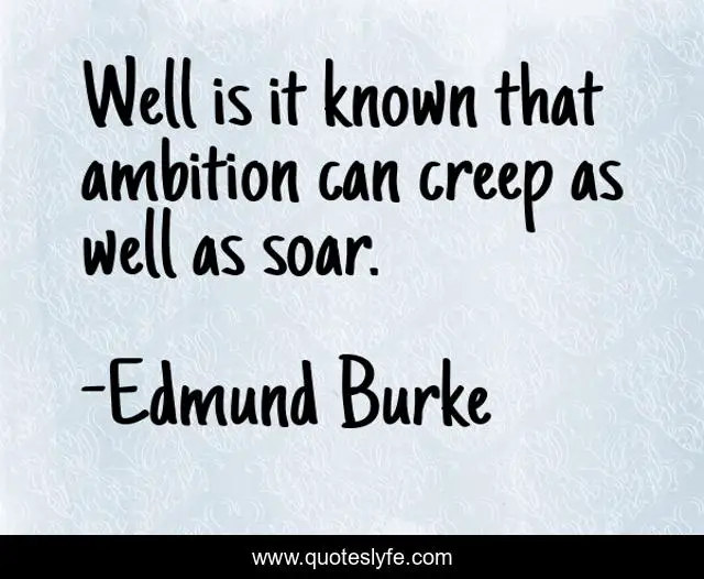This page presents the quote "Well is it known that ambition can creep as well as soar.". Author of this quote is Edmund Burke. This quote is about goals, ambition,.