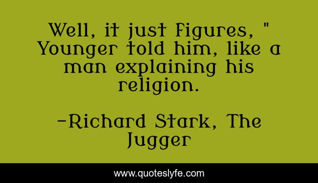 This page presents the quote "Well, it just figures, " Younger told him, like a man explaining his religion.". Author of this quote is Richard Stark, The Jugger. This quote is about religion, sarcasm,.