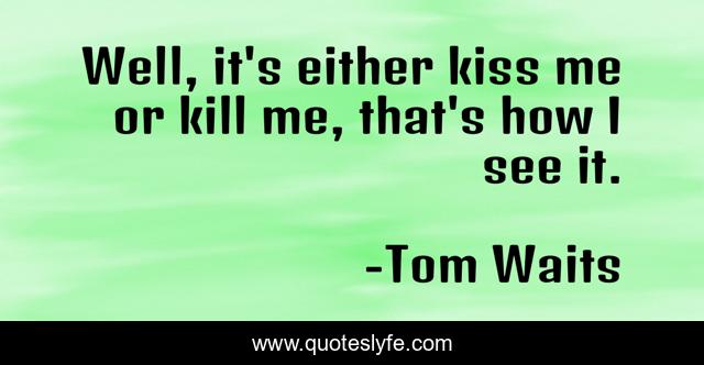 This page presents the quote "Well, it's either kiss me or kill me, that's how I see it.". Author of this quote is Tom Waits. This quote is about kill, kiss,.