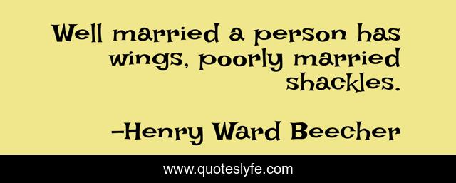 This page presents the quote "Well married a person has wings, poorly married shackles.". Author of this quote is Henry Ward Beecher. This quote is about person, well, wings,.