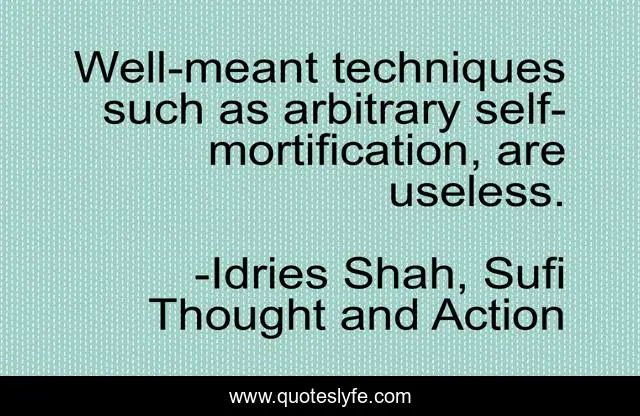 This page presents the quote "Well-meant techniques such as arbitrary self-mortification, are useless.". Author of this quote is Idries Shah, Sufi Thought and Action. This quote is about religion, sufism, sufis, psychology, wisdom,.