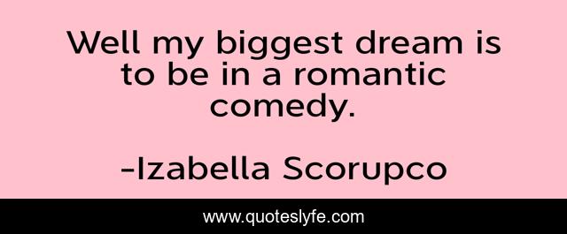 This page presents the quote "Well my biggest dream is to be in a romantic comedy.". Author of this quote is Izabella Scorupco. This quote is about dream, comedy, well,.