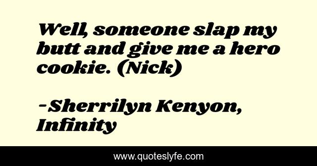 This page presents the quote "Well, someone slap my butt and give me a hero cookie. (Nick)". Author of this quote is Sherrilyn Kenyon, Infinity. This quote is about funny, comedy, hero, sarcasm,.
