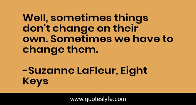 This page presents the quote "Well, sometimes things don't change on their own. Sometimes we have to change them.". Author of this quote is Suzanne LaFleur, Eight Keys. .