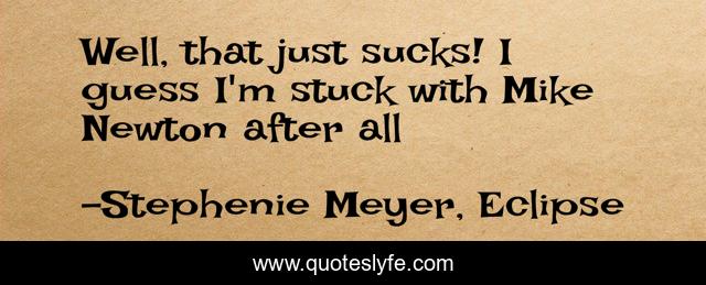 This page presents the quote "Well, that just sucks! I guess I'm stuck with Mike Newton after all". Author of this quote is Stephenie Meyer, Eclipse. .