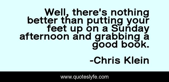 This page presents the quote "Well, there's nothing better than putting your feet up on a Sunday afternoon and grabbing a good book.". Author of this quote is Chris Klein. This quote is about feet, better, book,.