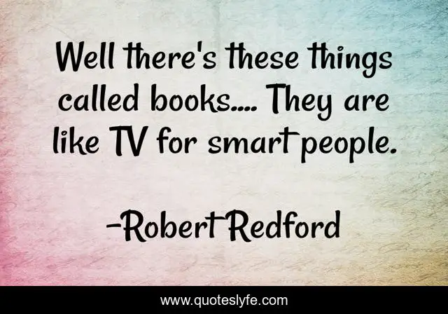 This page presents the quote "Well there's these things called books.... They are like TV for smart people.". Author of this quote is Robert Redford. This quote is about bill-bryson, books, humor, walk-in-the-woods, intelligence,.