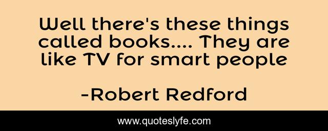 This page presents the quote "Well there's these things called books.... They are like TV for smart people". Author of this quote is Robert Redford. This quote is about intelligence, books, bill-bryson, walk-in-the-woods,.