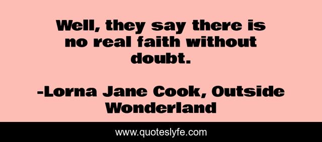 This page presents the quote "Well, they say there is no real faith without doubt.". Author of this quote is Lorna Jane Cook, Outside Wonderland. This quote is about faith, doubt,.