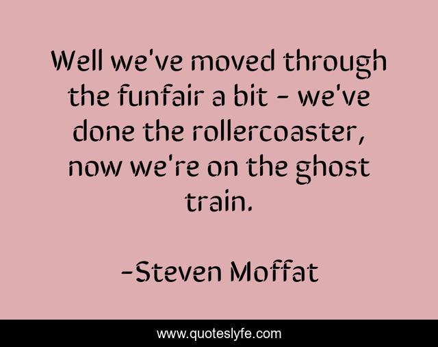 This page presents the quote "Well we've moved through the funfair a bit - we've done the rollercoaster, now we're on the ghost train.". Author of this quote is Steven Moffat. This quote is about doctor-who, steven-moffat, nightmare-fuel, science-fiction,.