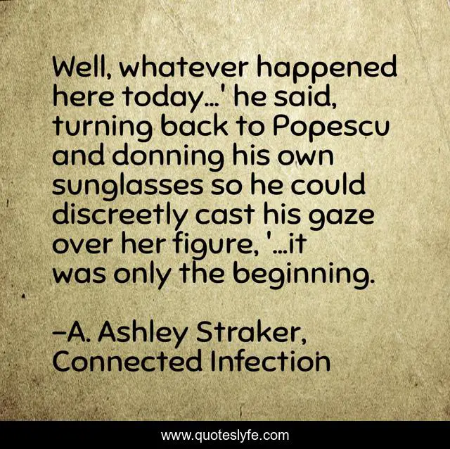 "A. Ashley Straker, Connected Infection Quotes." Quoteslyfe.com, 2025. Fri. 05 Dec. 2025. <https://www.quoteslyfe.com/quote/Well-whatever-happened-here-today-he-said-157886>.