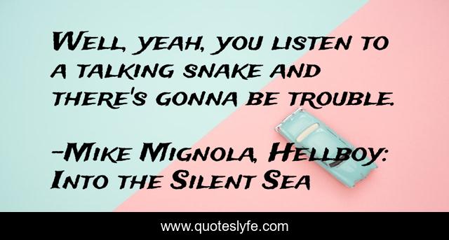 This page presents the quote "Well, yeah, you listen to a talking snake and there's gonna be trouble.". Author of this quote is Mike Mignola, Hellboy: Into the Silent Sea. This quote is about bprd, lovecraftian, pirates, serpent, horror, hellboy, mike-mignola, gary-gianni, snake,.