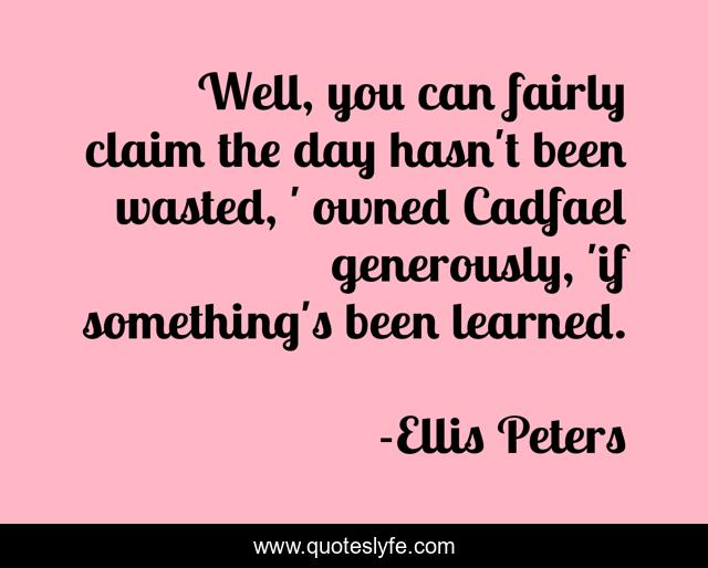 This page presents the quote "Well, you can fairly claim the day hasn't been wasted, ' owned Cadfael generously, 'if something's been learned.". Author of this quote is Ellis Peters. This quote is about knowledge, learning, wisdom,.