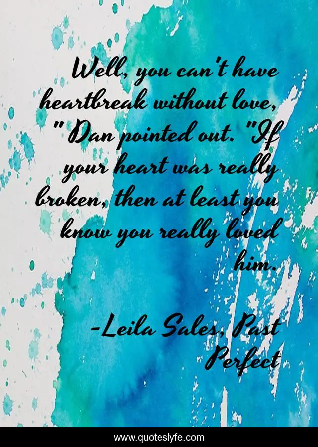 "Leila Sales, Past Perfect Quotes." Quoteslyfe.com, 2025. Fri. 05 Dec. 2025. <https://www.quoteslyfe.com/quote/Well-you-can-t-have-heartbreak-without-172953>.