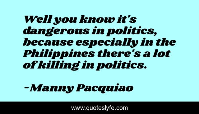 This page presents the quote "Well you know it's dangerous in politics, because especially in the Philippines there's a lot of killing in politics.". Author of this quote is Manny Pacquiao. .