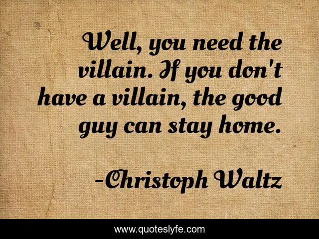 This page presents the quote "Well, you need the villain. If you don't have a villain, the good guy can stay home.". Author of this quote is Christoph Waltz. This quote is about home, villain,.