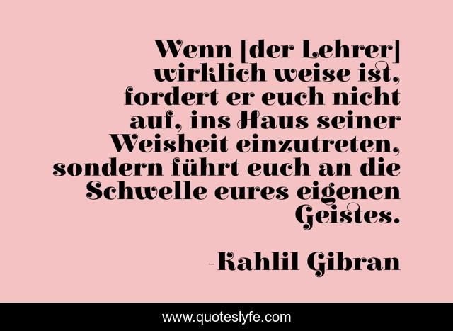 This page presents the quote "Wenn [der Lehrer] wirklich weise ist, fordert er euch nicht auf, ins Haus seiner Weisheit einzutreten, sondern führt euch an die Schwelle eures eigenen Geistes.". Author of this quote is Kahlil Gibran. This quote is about education, knowledge, wisdom,.