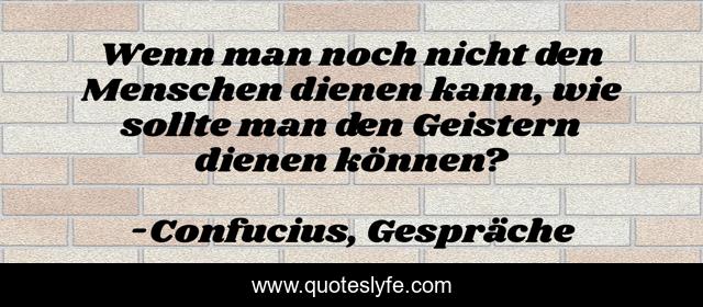 This page presents the quote "Wenn man noch nicht den Menschen dienen kann, wie sollte man den Geistern dienen können?". Author of this quote is Confucius, Gespräche. .