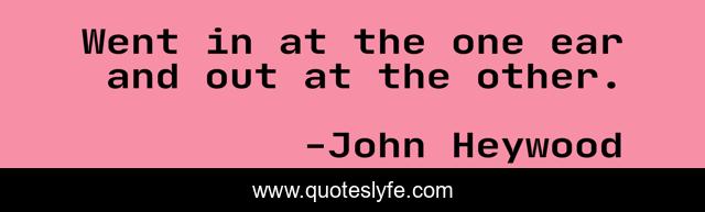 This page presents the quote "Went in at the one ear and out at the other.". Author of this quote is John Heywood. .