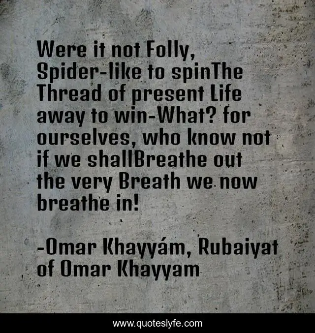 "Omar Khayyám, Rubaiyat of Omar Khayyam Quotes." Quoteslyfe.com, 2025. Sat. 06 Dec. 2025. <https://www.quoteslyfe.com/quote/Were-it-not-Folly-Spider-like-to-256243>.