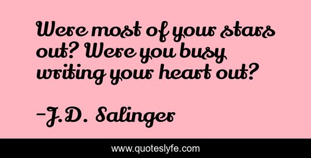 This page presents the quote "Were most of your stars out? Were you busy writing your heart out?". Author of this quote is J.D. Salinger. This quote is about seymour-an-introduction, writing,.
