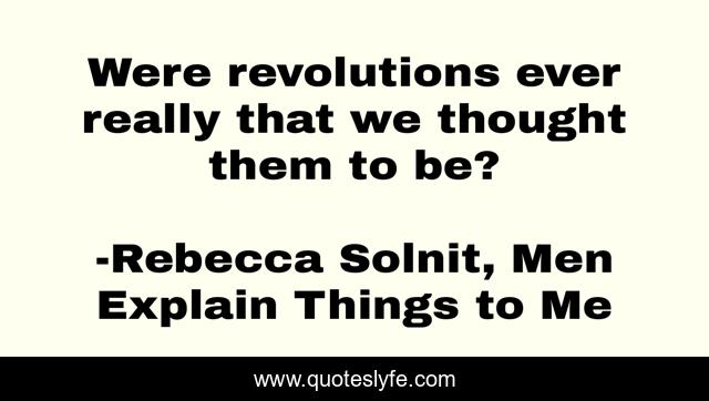"Rebecca Solnit, Men Explain Things to Me Quotes." Quoteslyfe.com, 2025. Fri. 05 Dec. 2025. <https://www.quoteslyfe.com/quote/Were-revolutions-ever-really-that-we-thought-207002>.