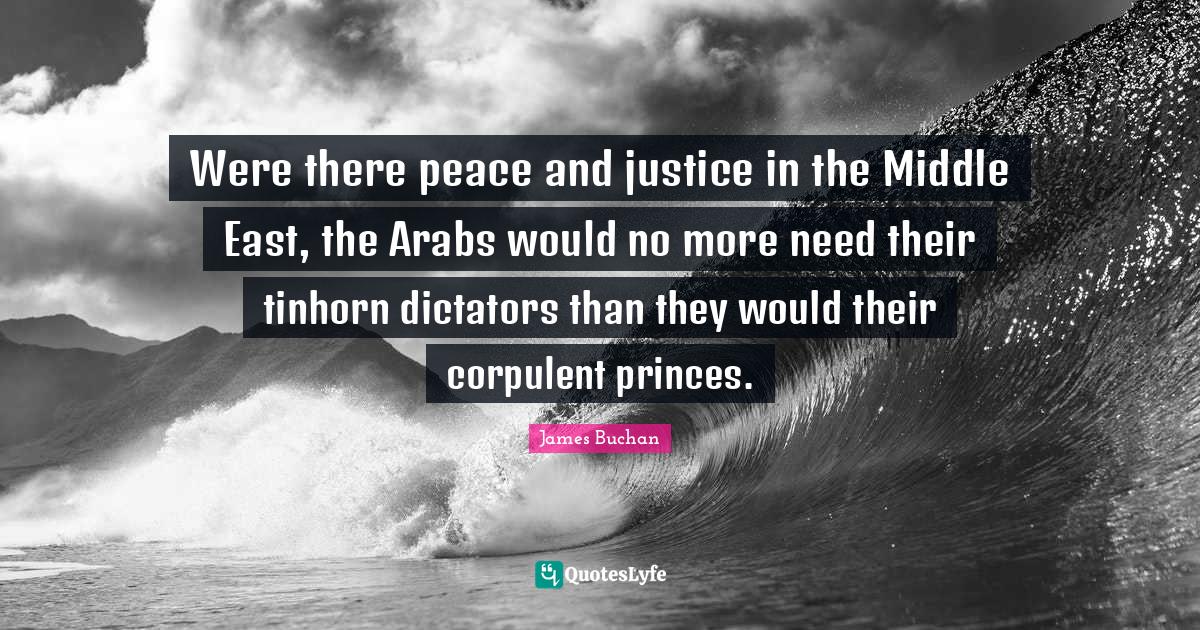 This page presents the quote "Were there peace and justice in the Middle East, the Arabs would no more need their tinhorn dictators than they would their corpulent princes.". Author of this quote is James Buchan. This quote is about justice, peace and justice, middle east, needs,.