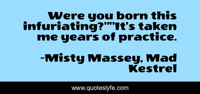 "Misty Massey, Mad Kestrel Quotes." Quoteslyfe.com, 2025. Sat. 06 Dec. 2025. <https://www.quoteslyfe.com/quote/Were-you-born-this-infuriating-It-s-179651>.