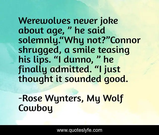 "Rose Wynters, My Wolf Cowboy Quotes." Quoteslyfe.com, 2025. Tue. 09 Dec. 2025. <https://www.quoteslyfe.com/quote/Werewolves-never-joke-about-age-he-said-41367>.