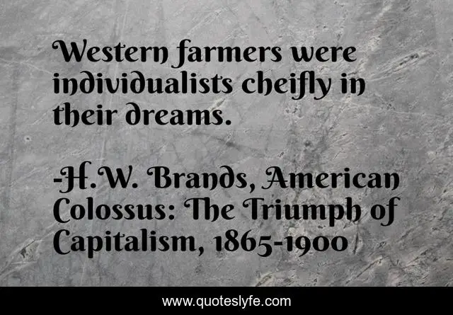 "H.W. Brands, American Colossus: The Triumph of Capitalism, 1865-1900 Quotes." Quoteslyfe.com, 2025. Tue. 09 Dec. 2025. <https://www.quoteslyfe.com/quote/Western-farmers-were-individualists-cheifly-in-their-197834>.