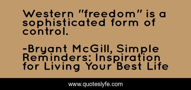 This page presents the quote "Western "freedom" is a sophisticated form of control.". Author of this quote is Bryant McGill, Simple Reminders: Inspiration for Living Your Best Life. This quote is about control, freedom, sophistication,.