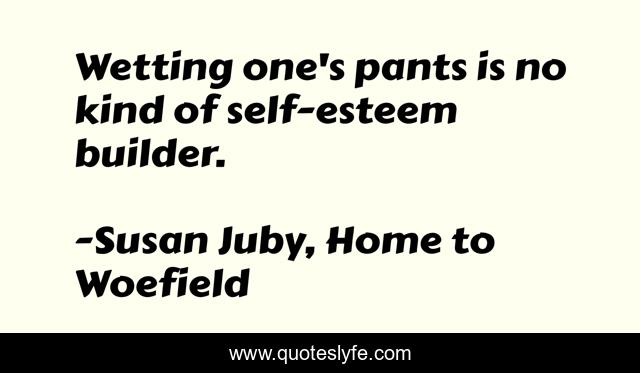 This page presents the quote "Wetting one's pants is no kind of self-esteem builder.". Author of this quote is Susan Juby, Home to Woefield. This quote is about wetting-pants, drunk, seth, self-esteem,.