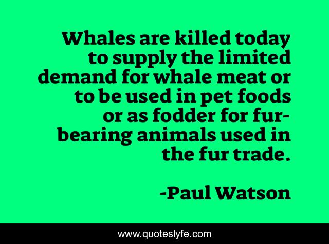 This page presents the quote "Whales are killed today to supply the limited demand for whale meat or to be used in pet foods or as fodder for fur-bearing animals used in the fur trade.". Author of this quote is Paul Watson. This quote is about animals, meat, today,.