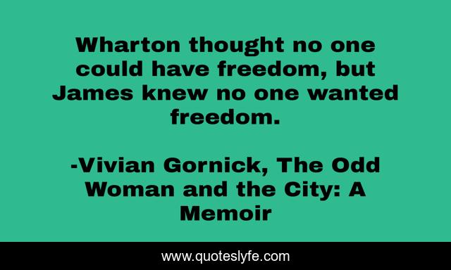"Vivian Gornick, The Odd Woman and the City: A Memoir Quotes." Quoteslyfe.com, 2025. Fri. 05 Dec. 2025. <https://www.quoteslyfe.com/quote/Wharton-thought-no-one-could-have-freedom-55185>.