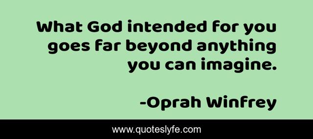 This page presents the quote "What God intended for you goes far beyond anything you can imagine.". Author of this quote is Oprah Winfrey. This quote is about anything, imagine,.