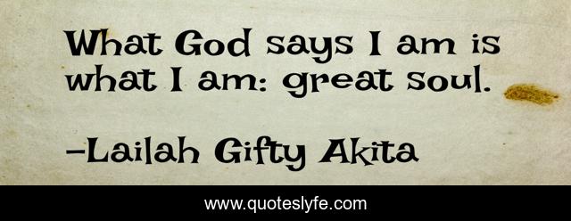 This page presents the quote "What God says I am is what I am: great soul.". Author of this quote is Lailah Gifty Akita. This quote is about confidence, lailah-gifty-akita-affirmations, god, motivational, soul, optimistic, positive,.