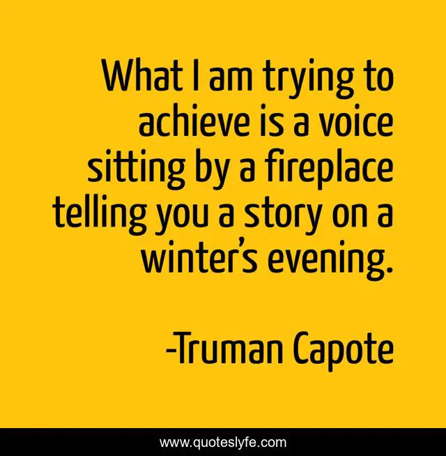 This page presents the quote "What I am trying to achieve is a voice sitting by a fireplace telling you a story on a winter’s evening.". Author of this quote is Truman Capote. This quote is about writing, writing-advice,.