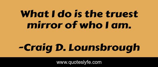 This page presents the quote "What I do is the truest mirror of who I am.". Author of this quote is Craig D. Lounsbrough. This quote is about reflection, mirror, self-understanding, value, choices, passion, authenticity, performance, self-concept,.
