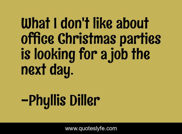 This page presents the quote "What I don't like about office Christmas parties is looking for a job the next day.". Author of this quote is Phyllis Diller. This quote is about looking, job, day,.