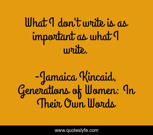 This page presents the quote "What I don't write is as important as what I write.". Author of this quote is Jamaica Kincaid, Generations of Women: In Their Own Words. .