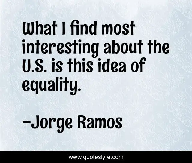 This page presents the quote "What I find most interesting about the U.S. is this idea of equality.". Author of this quote is Jorge Ramos. This quote is about interesting, find, idea,.