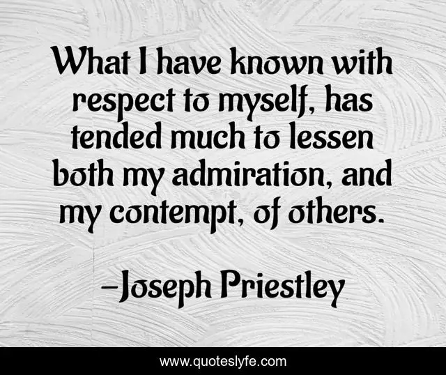 This page presents the quote "What I have known with respect to myself, has tended much to lessen both my admiration, and my contempt, of others.". Author of this quote is Joseph Priestley. This quote is about myself, admiration, others,.