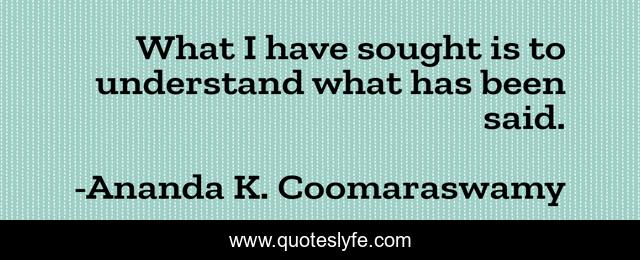 This page presents the quote "What I have sought is to understand what has been said.". Author of this quote is Ananda K. Coomaraswamy. This quote is about understanding, wisdom,.