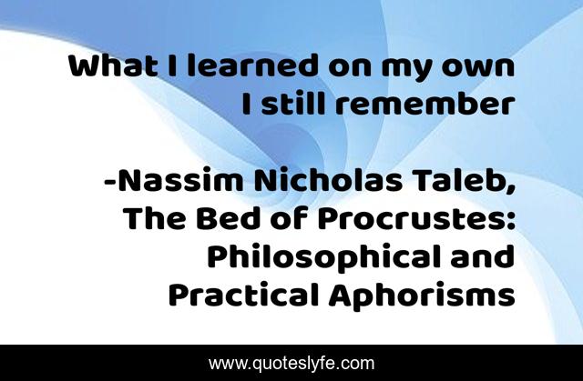 "Nassim Nicholas Taleb, The Bed of Procrustes: Philosophical and Practical Aphorisms Quotes." Quoteslyfe.com, 2025. Sat. 13 Dec. 2025. <https://www.quoteslyfe.com/quote/What-I-learned-on-my-own-I-117582>.