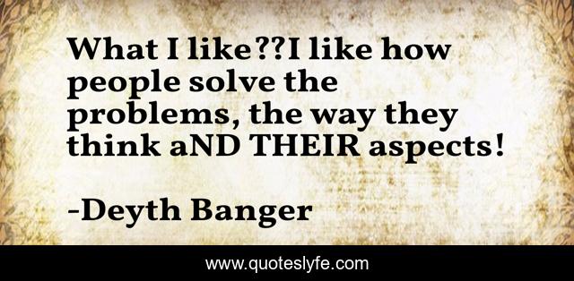 This page presents the quote "What I like??I like how people solve the problems, the way they think aND THEIR aspects!". Author of this quote is Deyth Banger. This quote is about aspects, like, problems, their, solve, way, math,.