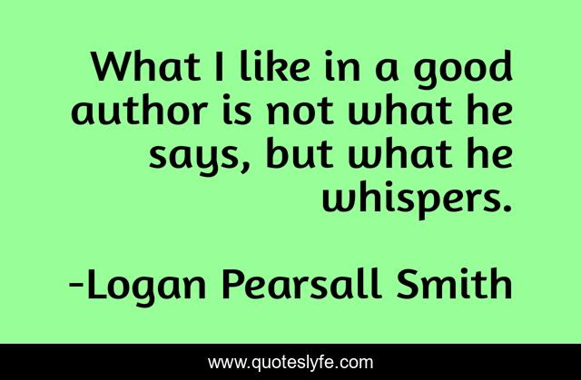 This page presents the quote "What I like in a good author is not what he says, but what he whispers.". Author of this quote is Logan Pearsall Smith. .