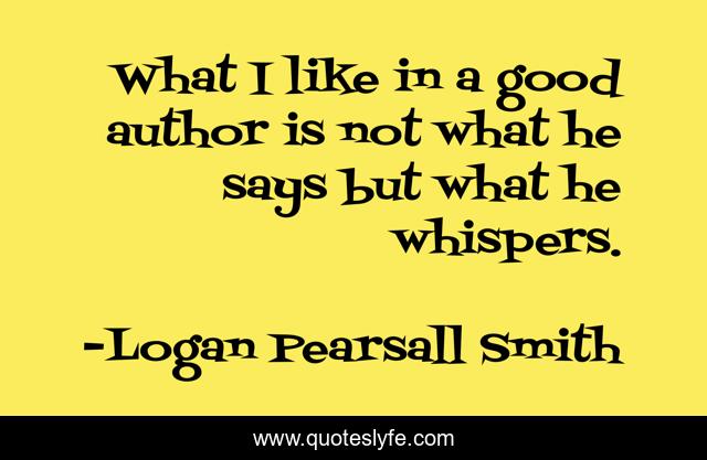 This page presents the quote "What I like in a good author is not what he says but what he whispers.". Author of this quote is Logan Pearsall Smith. This quote is about writers, writing,.