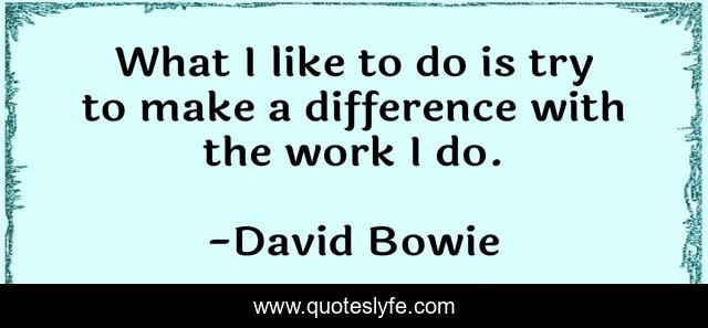 This page presents the quote "What I like to do is try to make a difference with the work I do.". Author of this quote is David Bowie. This quote is about try, make a difference,.