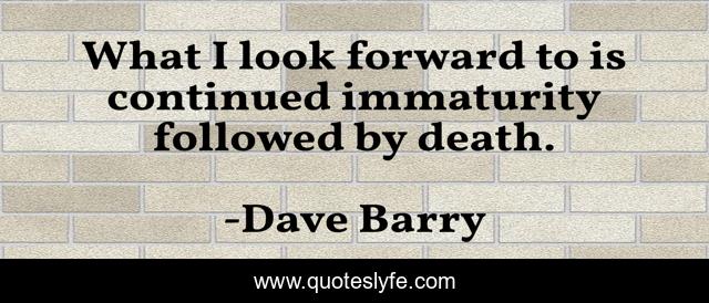 This page presents the quote "What I look forward to is continued immaturity followed by death.". Author of this quote is Dave Barry. This quote is about outlook, death, humorist, columnist,.